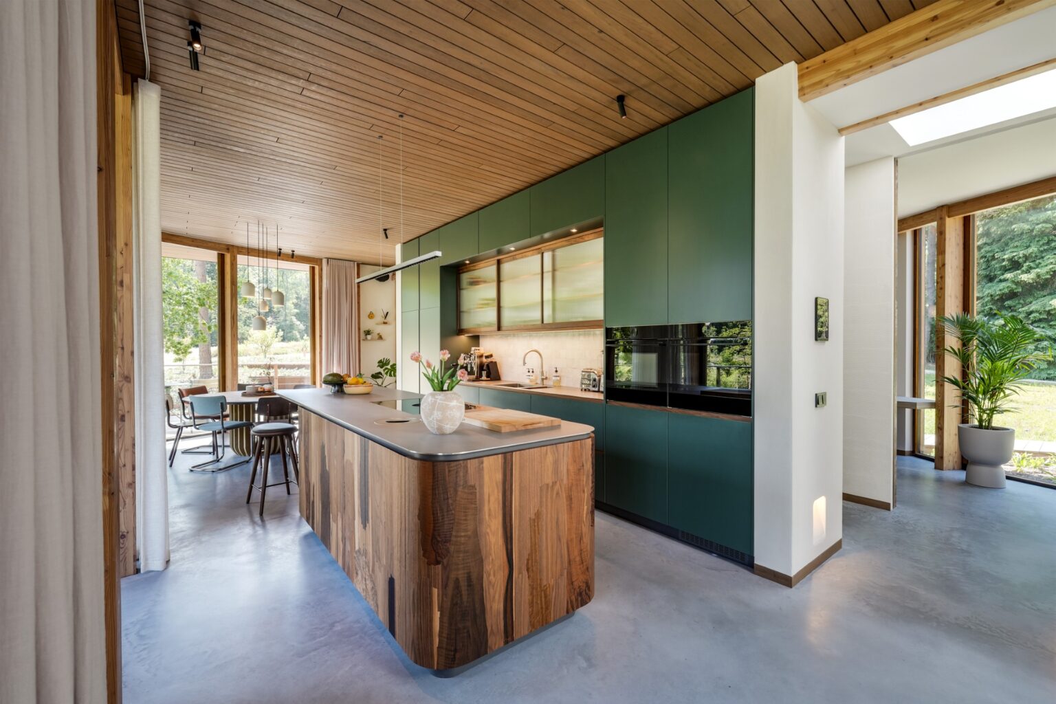Ons hout is niet alleen geschikt voor buiten. De thermisch gemodificeerde houtprofielen zijn licht van gewicht, vormvast en minder gevoelig voor werking door vocht of temperatuurwisselingen. Dat maakt ze ideaal voor interieurtoepassingen waar strakke lijnen en blijvende kwaliteit tellen: plafonds, keukenafwerking, lamellenpranden en maatwerkdetails.