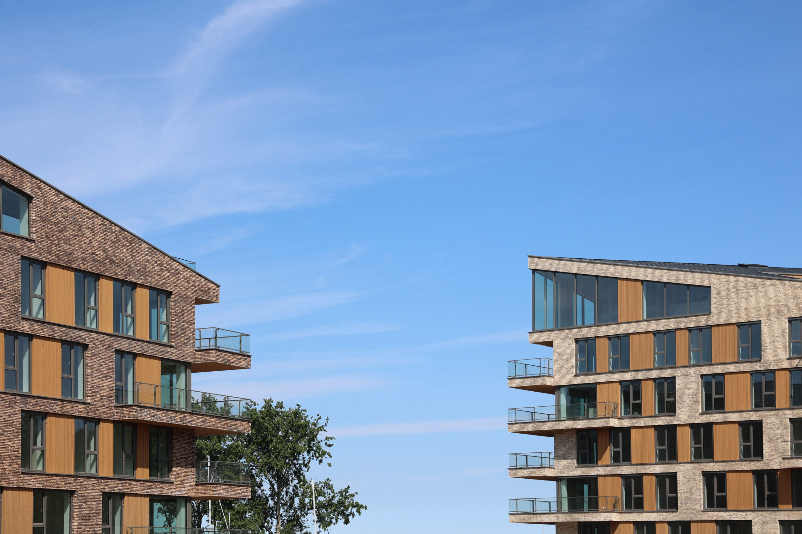 Aan het havenkanaal in Middelharnis staat De Hoogheijd inmiddels te shinen. Drie gebouwen met een rustige, moderne uitstraling en precies genoeg warmte. Hier doet hout z’n werk, subtiel, stijlvol, en je blijft er toch even naar kijken.