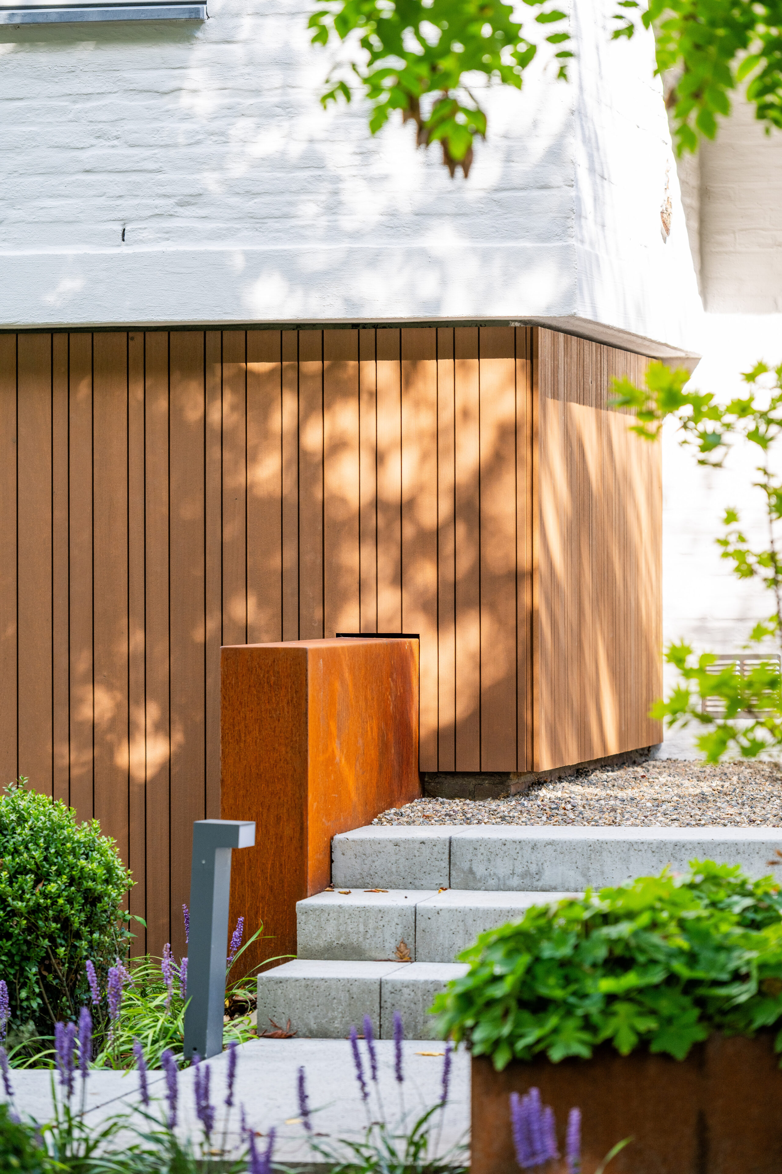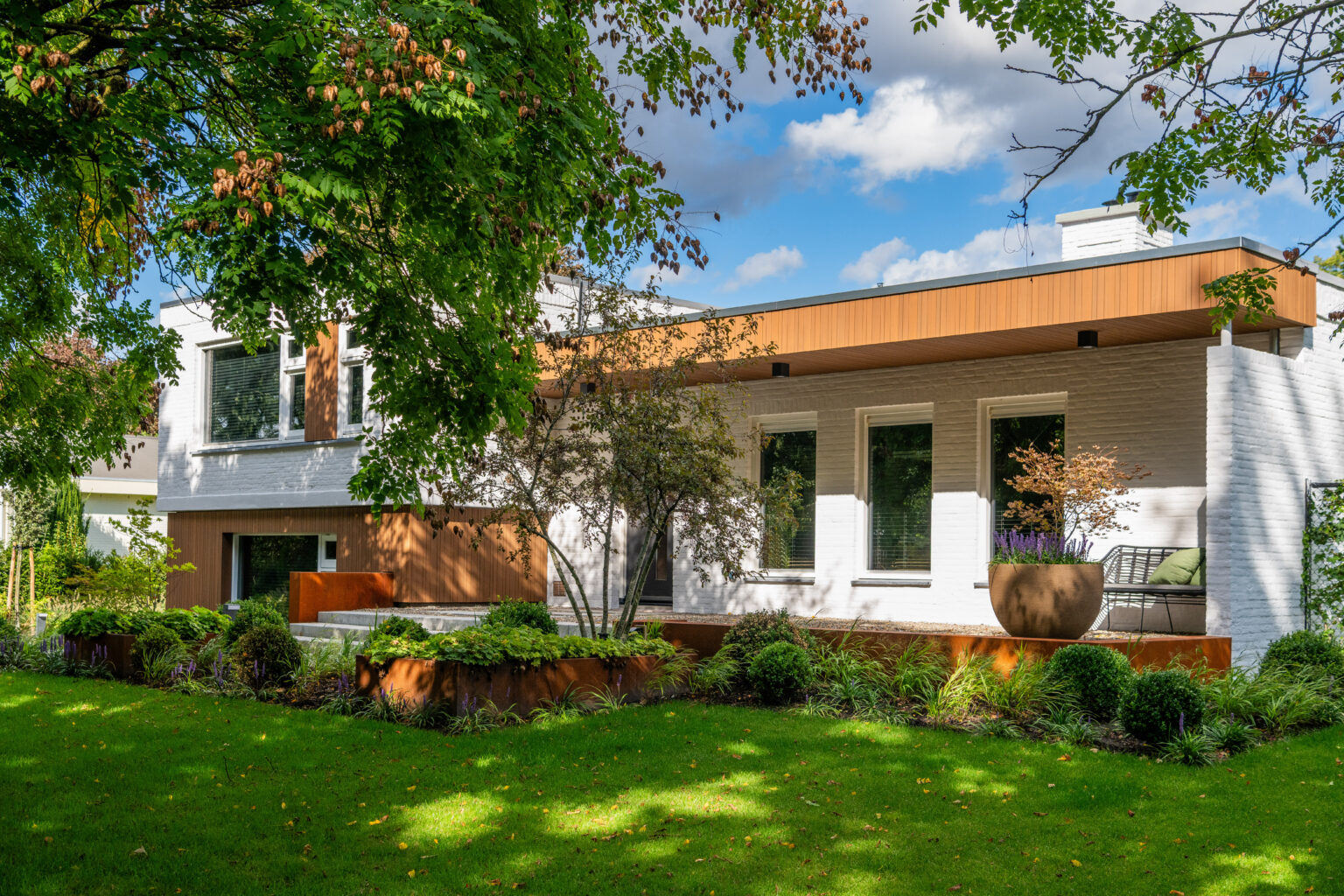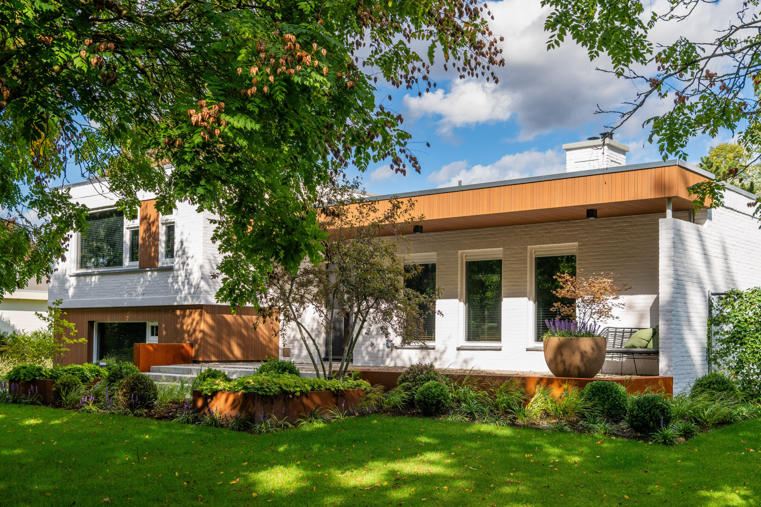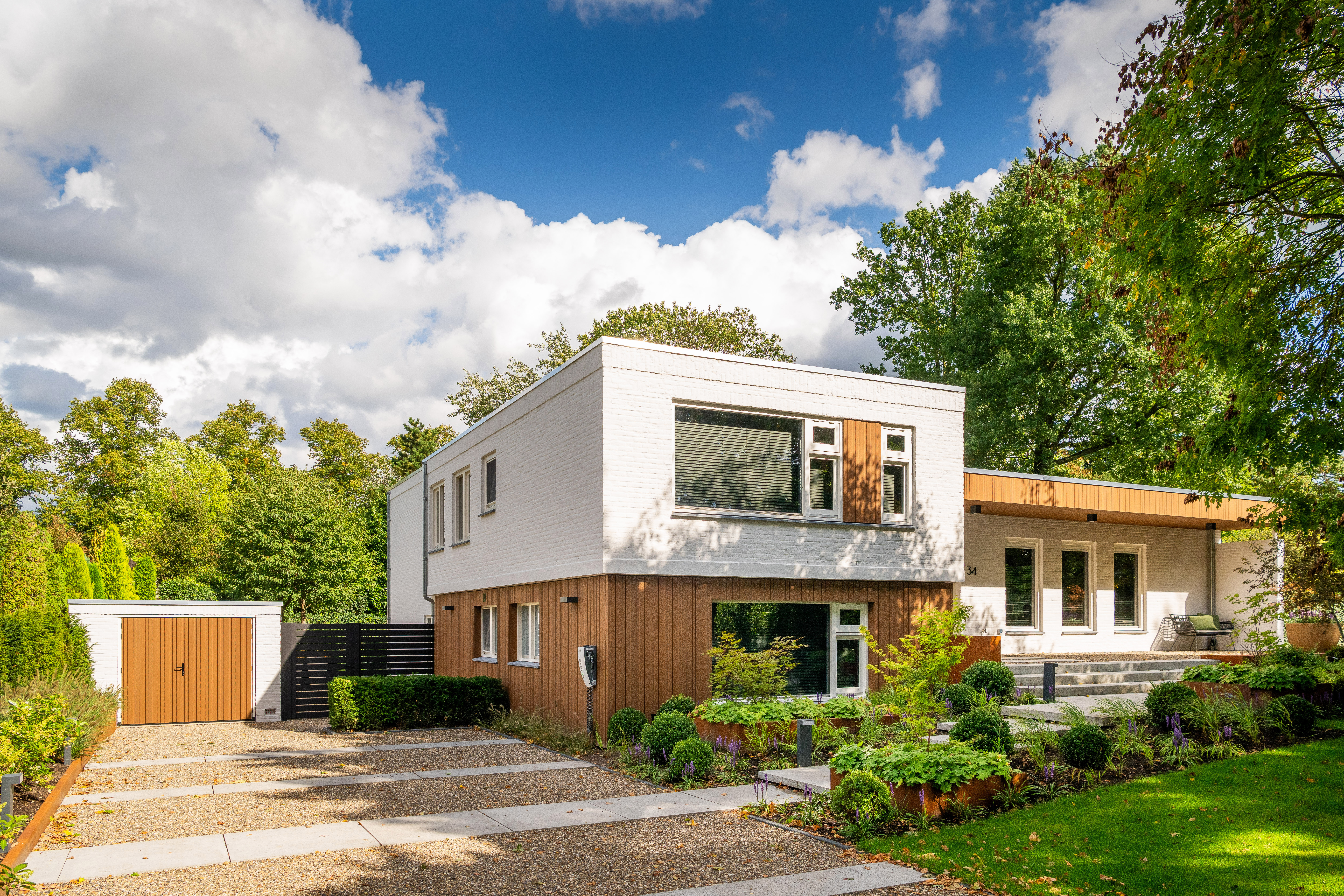 Wie zegt dat een jaren ’70-huis niet kan transformeren tot een moderne eyecatcher? Met ons Kode 1 en Kode 2 profiel (32 mm dik) in thermisch Ayous en de Varmé-kleurige WoodCream hebben we dit huis een complete make-over gegeven.